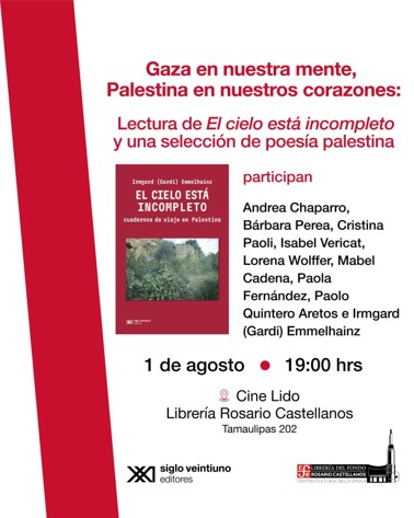 Lectura de: El cielo está incompleto y una selección de poesía palestina.
